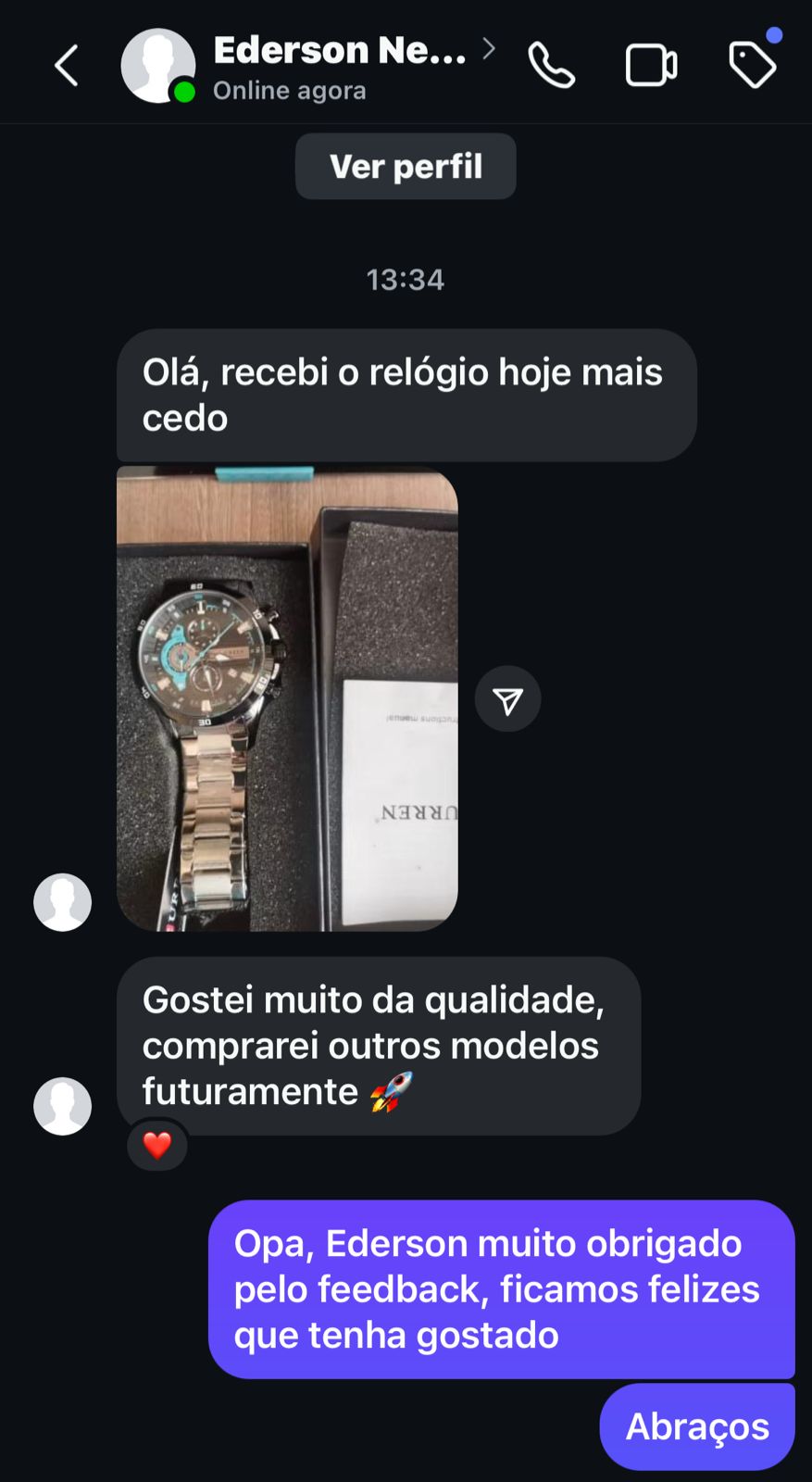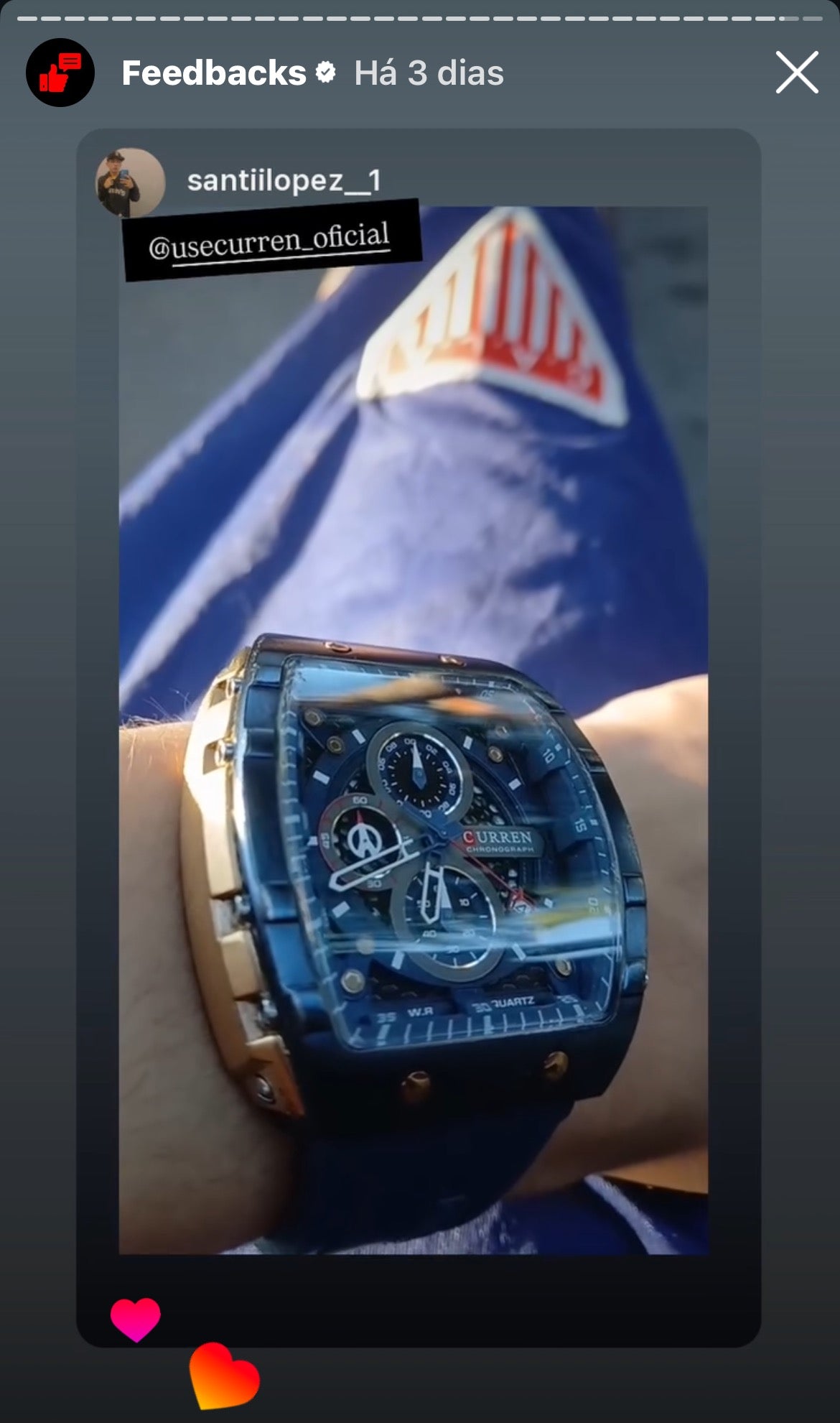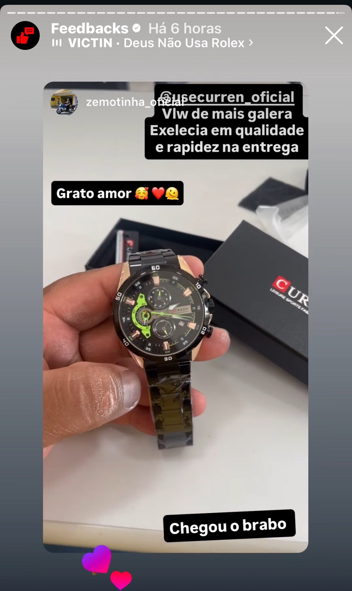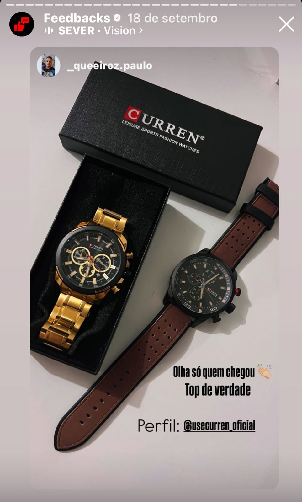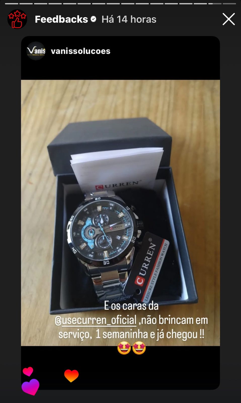 Temos total confiança na qualidade dos relógios Curren. Por isso,oferecemos 1 ano de garantia contra qualquer defeito de fabricação.