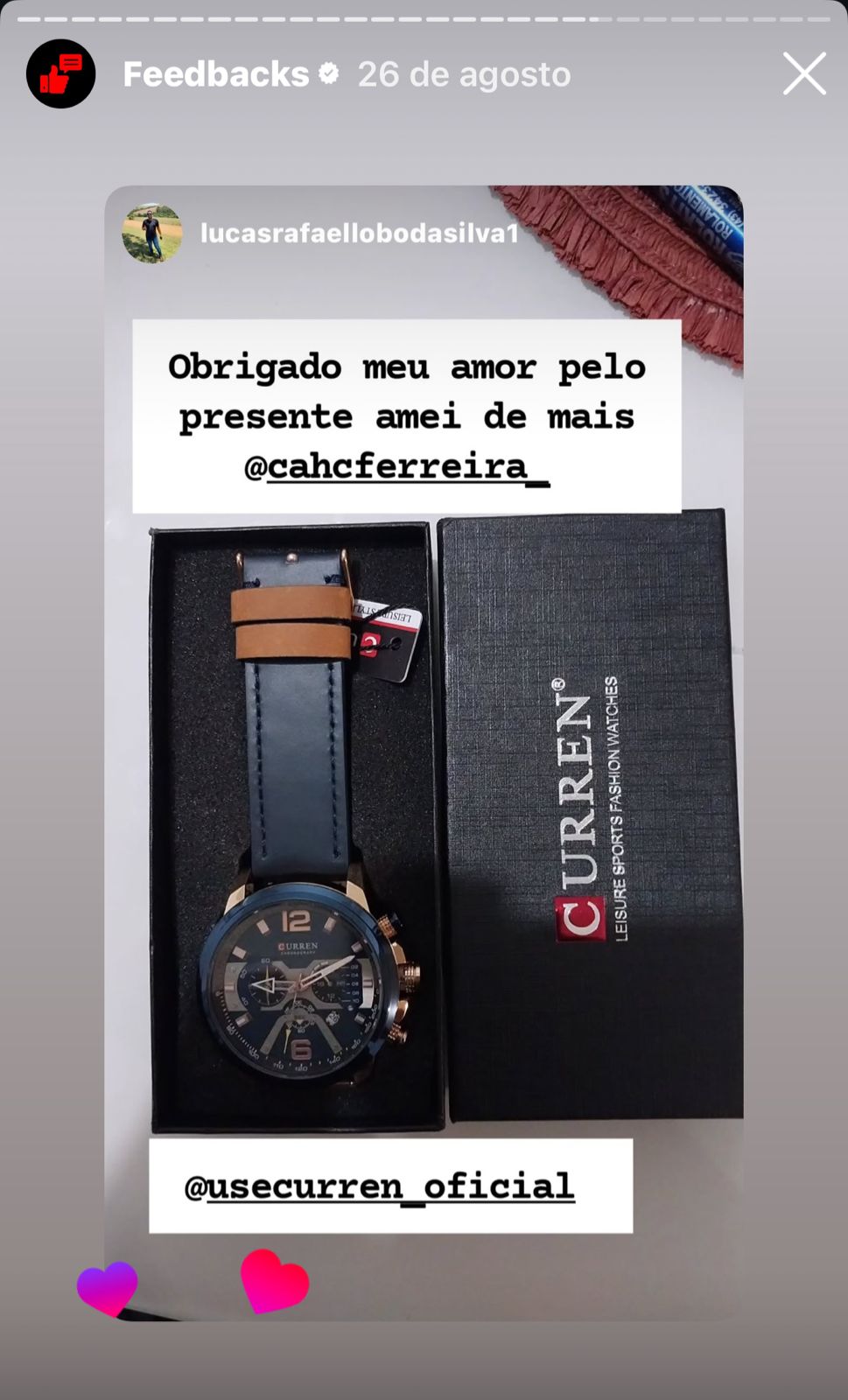 Temos total confiança na qualidade dos relógios Curren. Por isso,oferecemos 1 ano de garantia contra qualquer defeito de fabricação.
